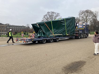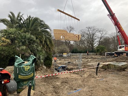 Anyone strolling up the Broad Walk past Kensington Palace recently, will have been astonished to see going past them an enormous low-loader, on its last stage of the journey from Germany, to deliver the high treehouse walk to the site. By now, the galleon (or Pirate ship) will have arrived as well, and both key items are being settled in. Both play items are taller than the ones they replace. The original foundations of the galleon are being used so it covers the same footprint but looks excitingly enormous, with an additional deck.